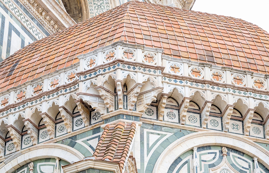 Concebido em 1293, o grande plano do Duomo, incluindo a cúpula, levou mais de 140 anos para ser concluído. Inicialmente sem tecnologia para a cúpula, sua construção começou em 1420, deixando o teto da cúpula exposto por anos antes de sua notável finalização em 1436.